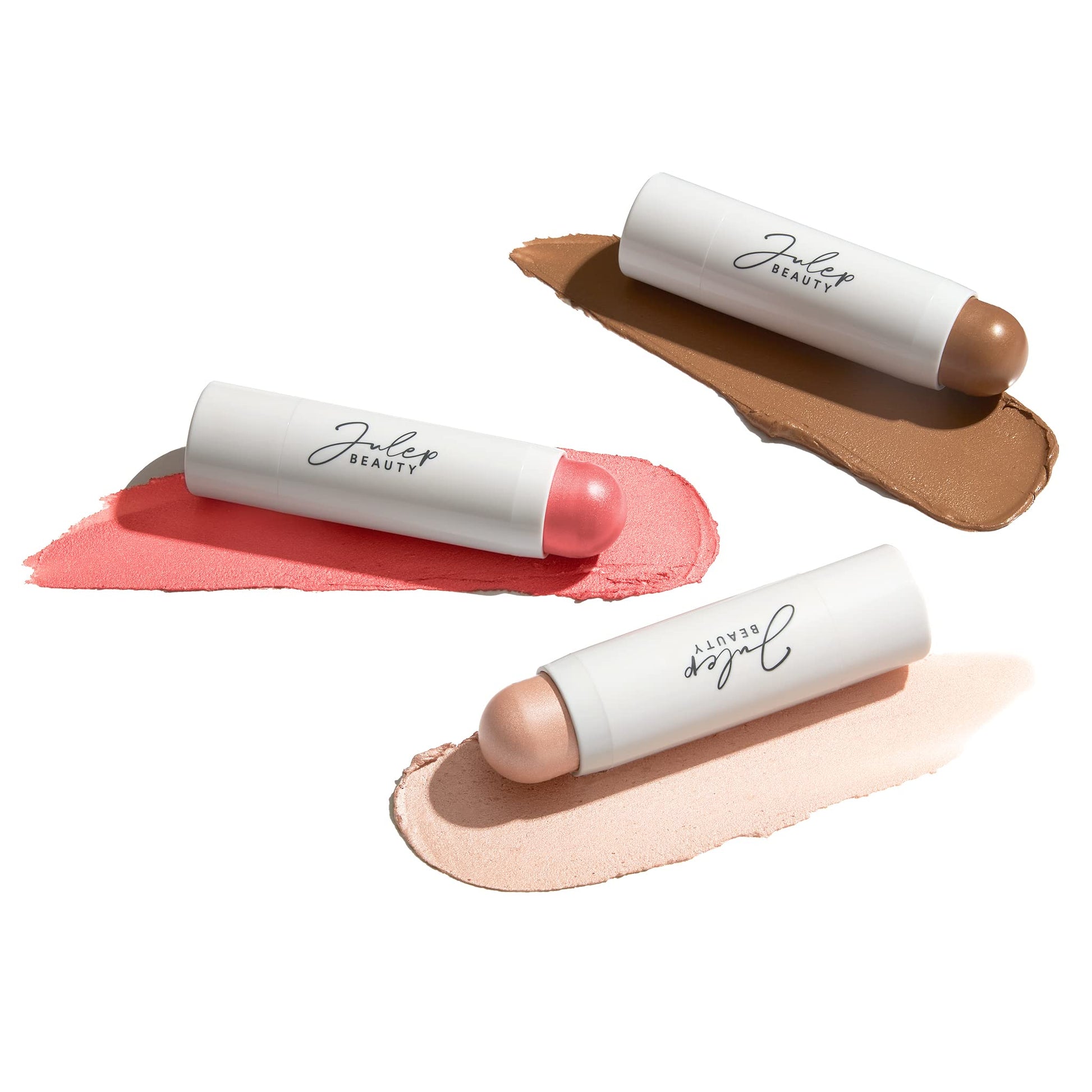 Julep Skip The Brush 3-In-1 Color Stick For Eyes, Cheeks, And Lip Trio Neutral Bronze, Sheer Glow, Golden Guava