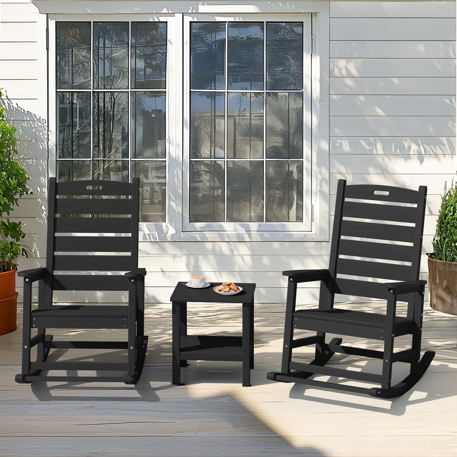 JUSTLET Outdoor Rocking Chair with Footrest, High Back HDPE Oversized Adirondack Slat Rocker for Patio,Garden,Lawn,Balcony, Black