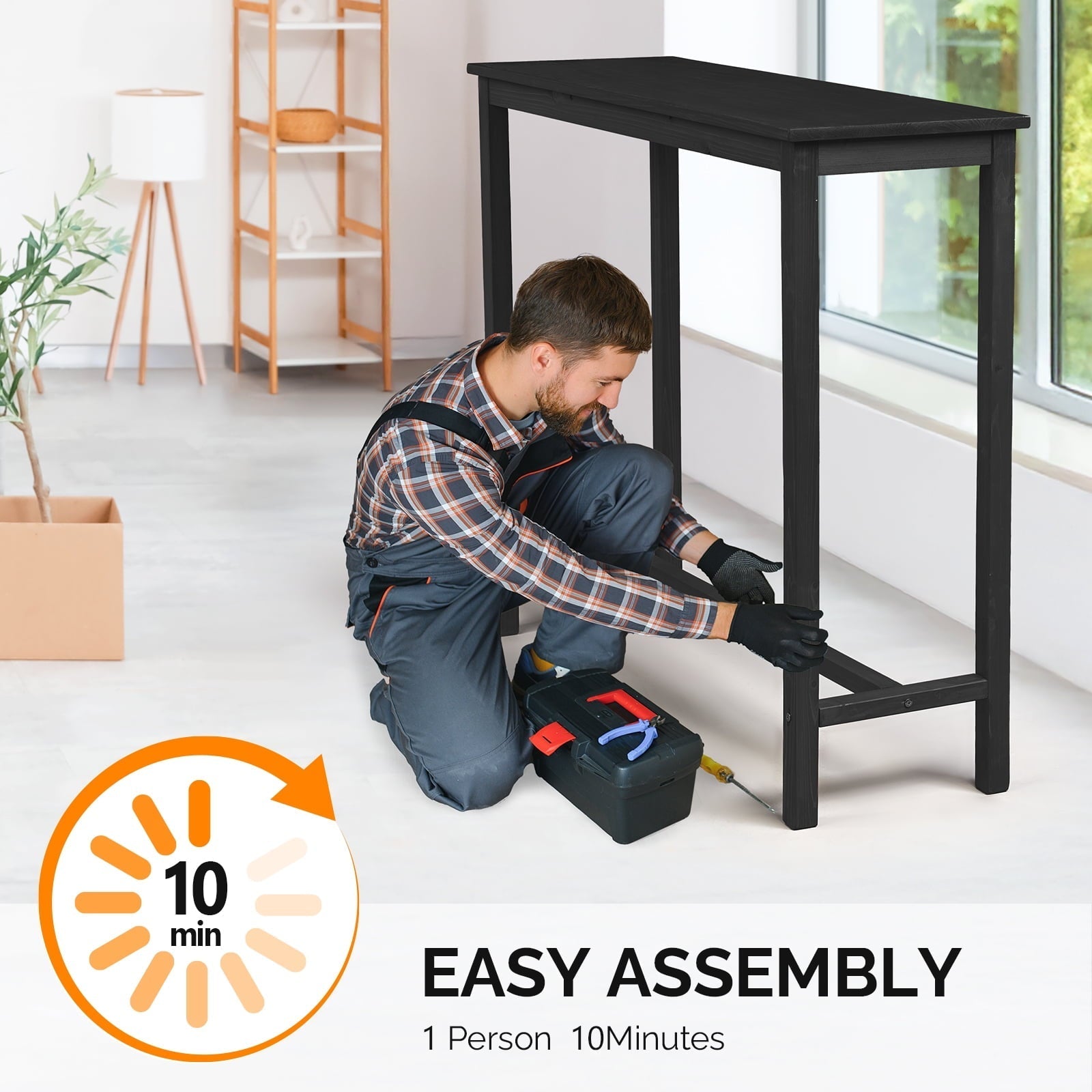 Ktaxon 45" Outdoor Bar Table, Wood Rectangle Narrow Counter Height Table, Weather Resistant Pub Table for Balcony Patio Garden Yard Poolside, Black