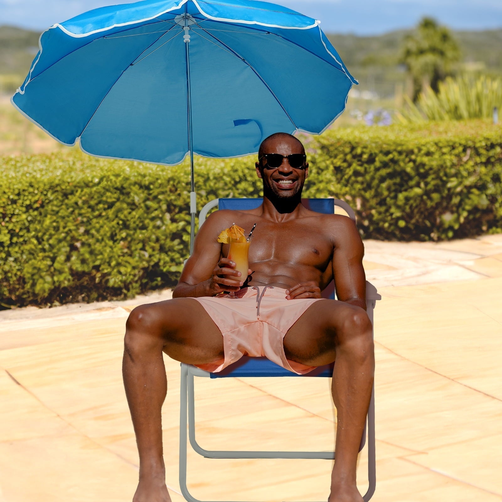 This beach chair with umbrella features a detachable sun shade, making the blue beach chair ideal for extended outdoor relaxation without direct sunlight exposure.