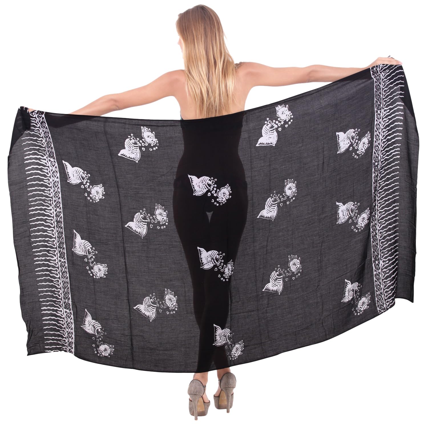 - Dive into a world of aquatic beauty with fish printed sarongs that add a touch of marine charm to your beach or poolside look, choose from a variety of vibrant fish motifs that capture the stunning colors and patterns of underwater life, creating an gorgeous ensemble, transform your sarong into a stylish scarf, shawl, dress, bandeau style, swim slit skirt, beach wrap, head scarf or just tie it around your waist as a maxi skirt