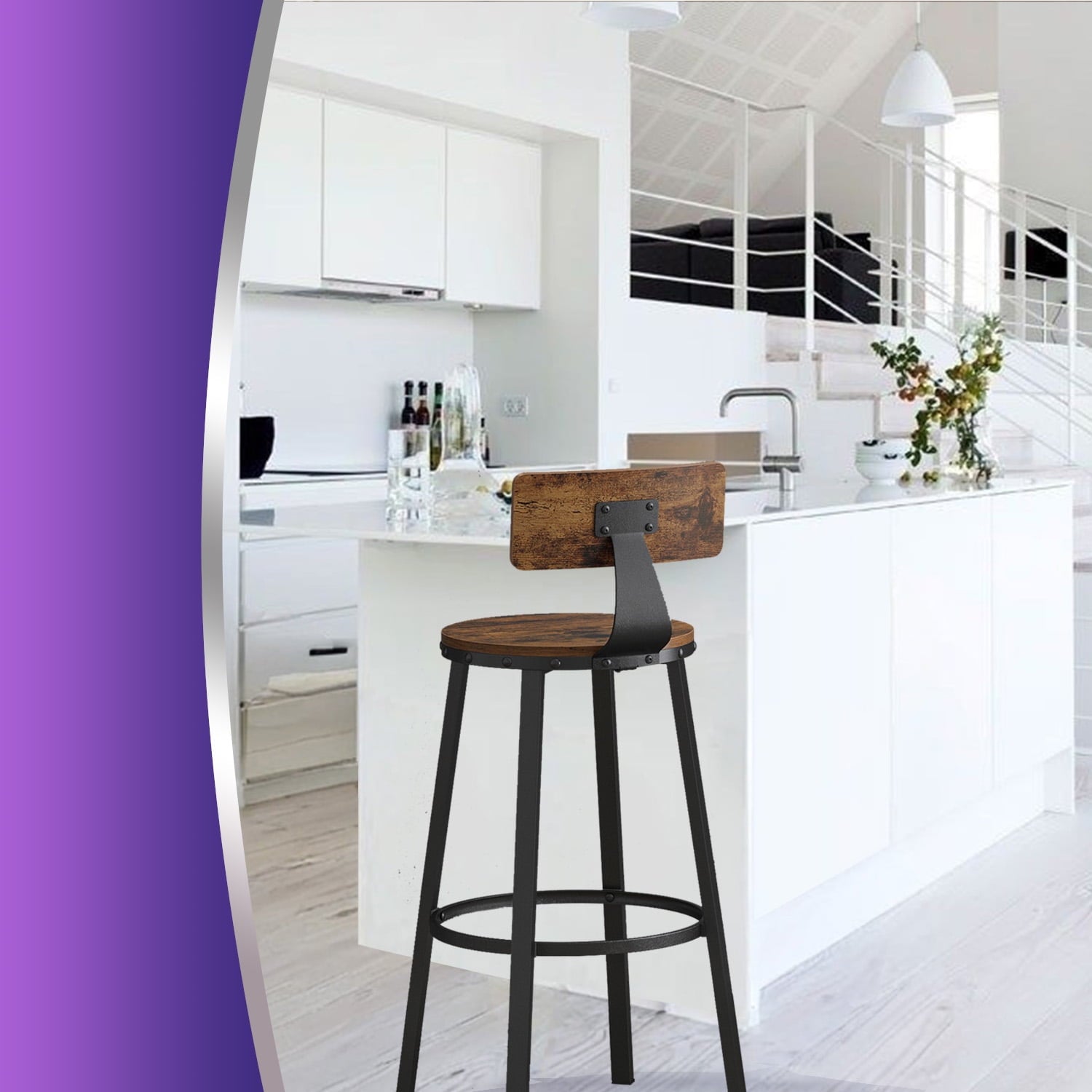 LEDREM Bar Stools Set of 2, Counter Height Barstools with Backrest & Footrest, 28.7" Sturdy Steel Frame, Ergonomic Design for Kitchen,Dining,Bar, Rustic Brown & Black