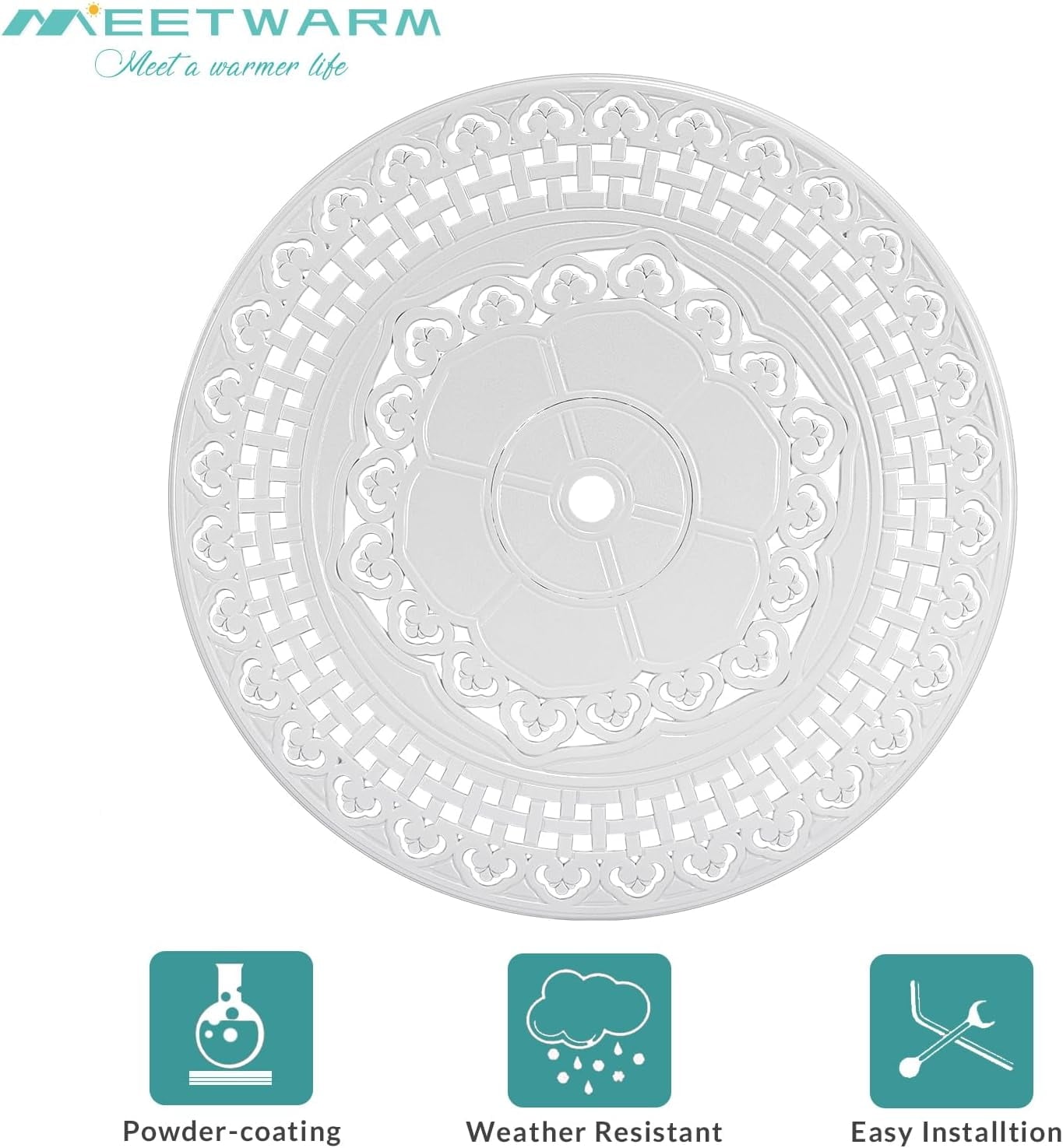 MEETWARM 38.5" Round Patio Dinning Table, Outdoor Cast Aluminum Dinning Table with 2" Umbrella Hole, White