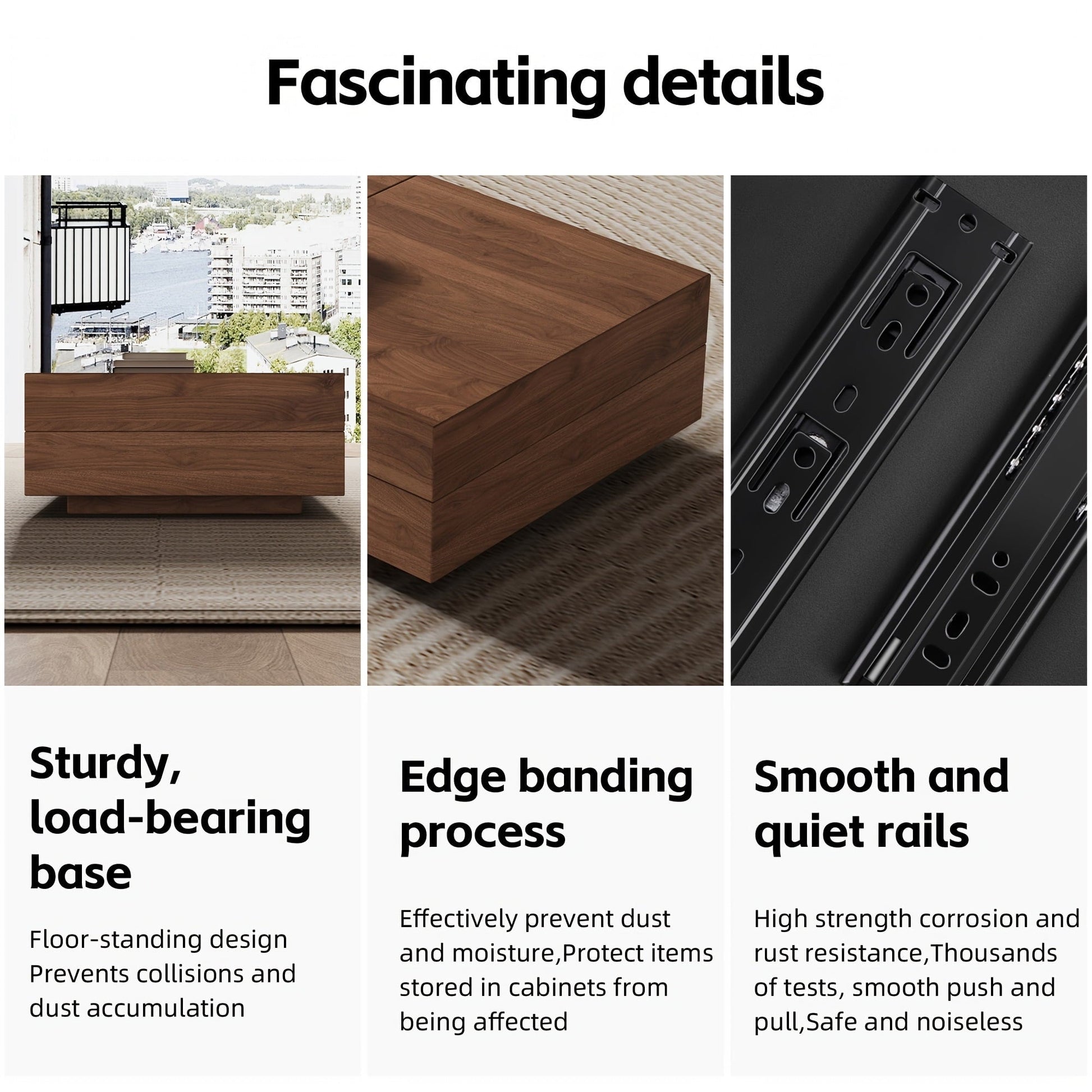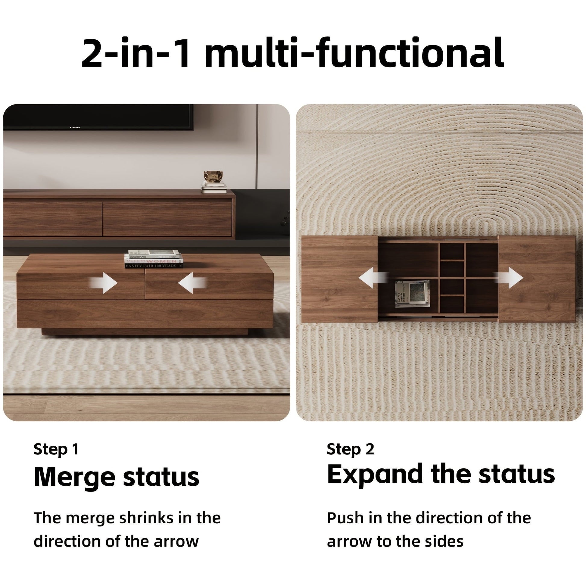 Upgrade your living space with this modern minimalist expandable coffee table in a stylish walnut finish. Designed to seamlessly blend elegance and functionality, it easily extends from 47.2 inches to 81.8 inches to meet different needs—perfect for family gatherings or casual lounging. Thoughtful built-in storage keeps your living room neat by organizing books, remotes, and décor items. Made from premium wood with a warm natural texture, this table is durable, stable, and comfortable to the touch. Lightweight and easy to assemble, it fits effortlessly into living rooms, bedrooms, or study spaces, adding both beauty and practicality. Enjoy peace of mind with dedicated customer support and a worry-free shopping experience.