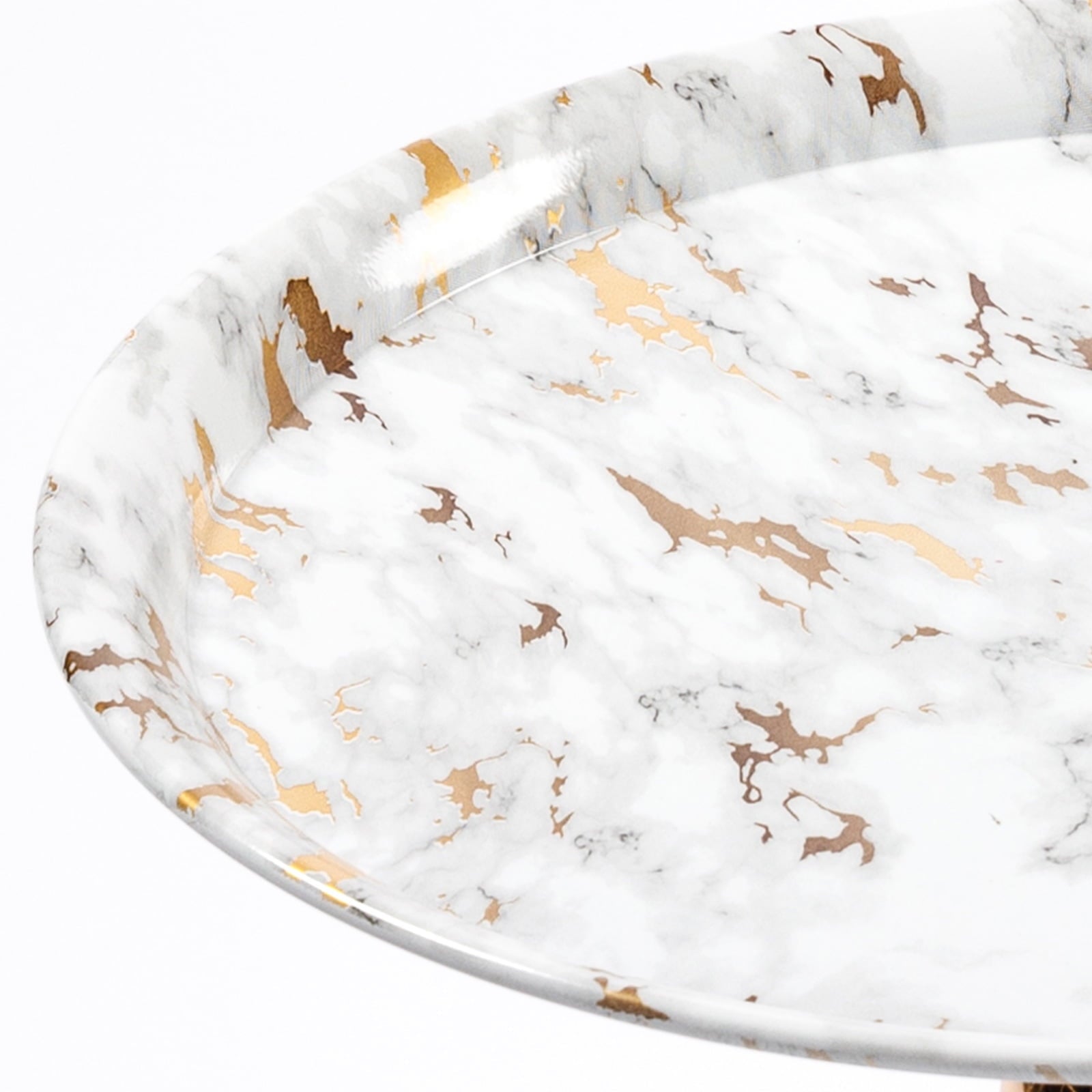 Modern Round Accent Table for Small Spaces - 21.3" Cream Pedestal Side Table with Tray Top, Perfect Minimalist End Table for Living Room, Bedroom, Sofa, White Marble