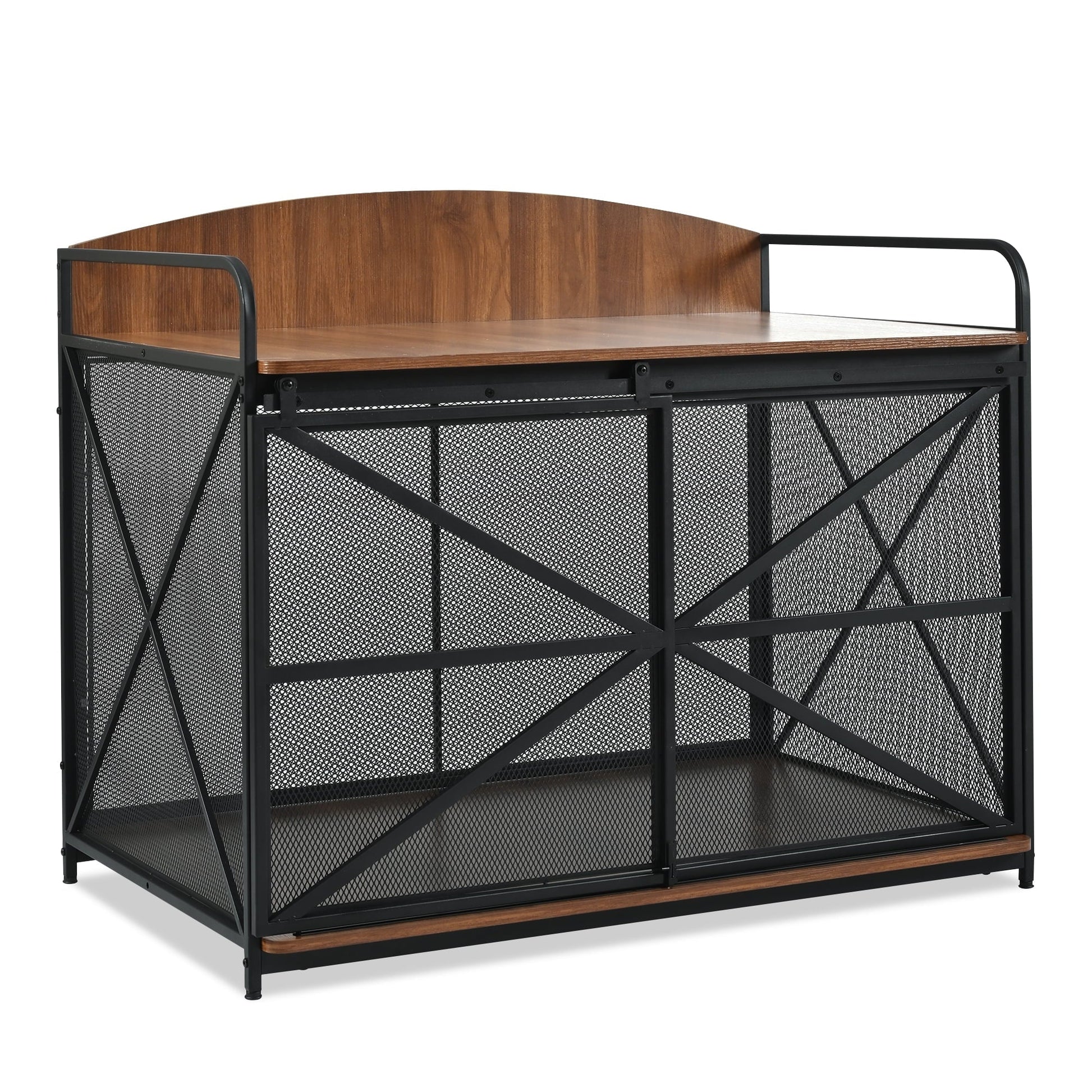 Noaman 42.8" Heavy Duty Farmhouse Dog Crate Furniture, Wooden Indoor Kennel & End Table for Large Dogs, Brown, Supports Up to 110lbs