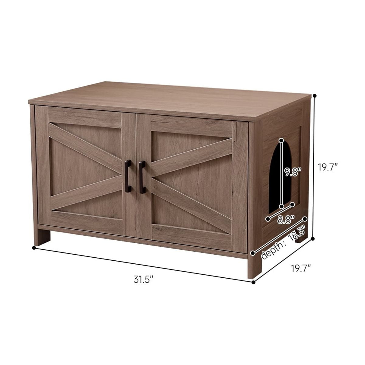 Noaman Cat Litter Box Enclosure with Barn Door, Wooden Cat Washroom Furniture & End Table, Fits Most Litter Boxes, 31.5"x19.7"x19.7", Greige