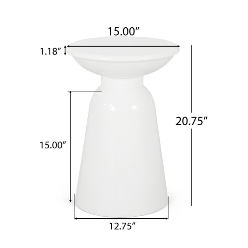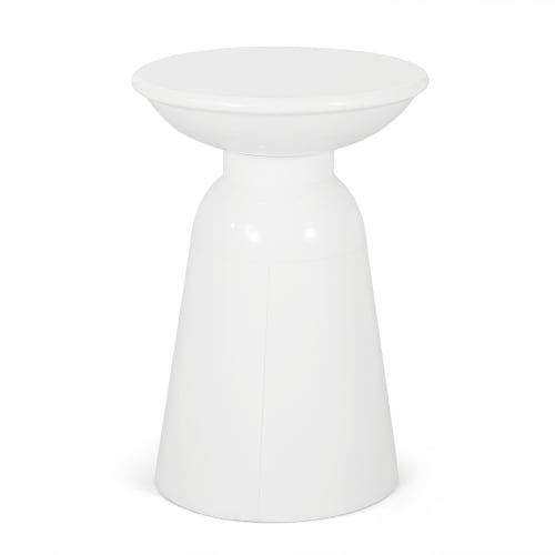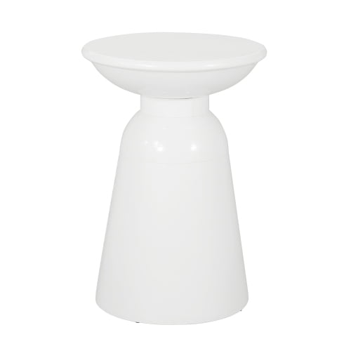 This large outdoor end table is made of durable metal with a stylish white finish. Its unique hourglass shape adds a touch of modern design to any patio or deck. The round tabletop provides ample space for drinks, snacks, or decorative items. Perfect for enhancing your outdoor living space, this table is both functional and aesthetically pleasing, offering a blend of practicality and contemporary style. The sturdy construction ensures it can withstand the elements, making it a reliable addition to your outdoor furniture collection.