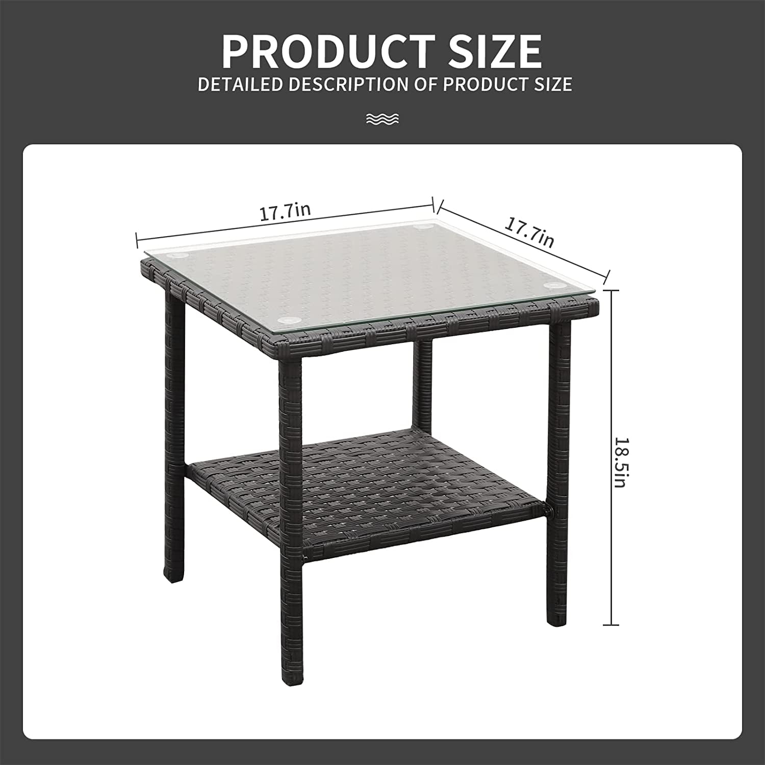 Outdoor PE Wicker Side Table - Patio Rattan Garden Coffee End Square Table with Glass Top Furniture, Black