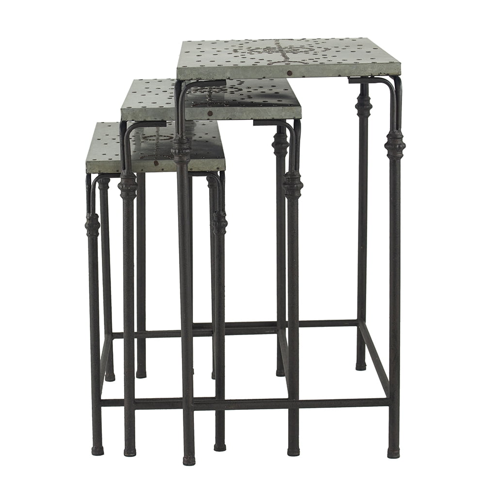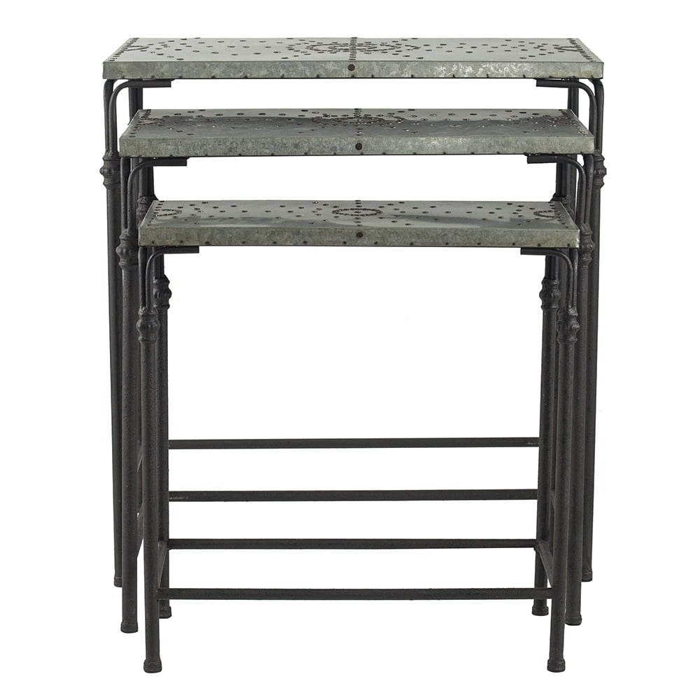 Antique Gray Outdoor Tables, Gilbert Set Of 3 Galvanaized Nesting Accent Tables 19'-24' X 9'-14' X 20'-26'