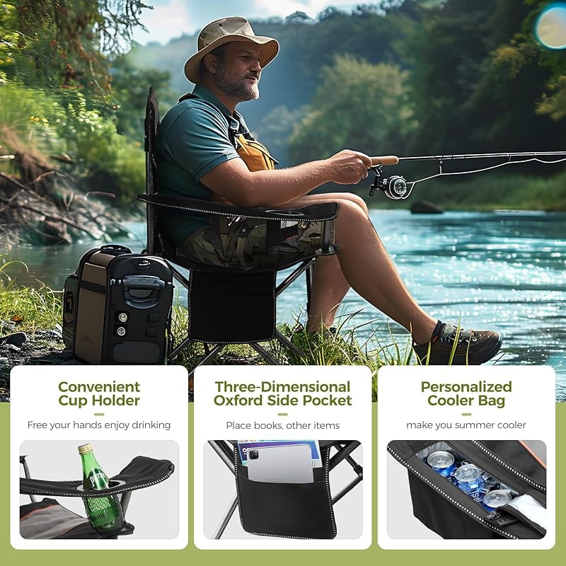 Oversized Camping Folding Chair, Heavy Duty Support 450 LBS Steel Frame Collapsible Padded Arm Chair with Cup Holder Quad Lumbar Back, Portable for