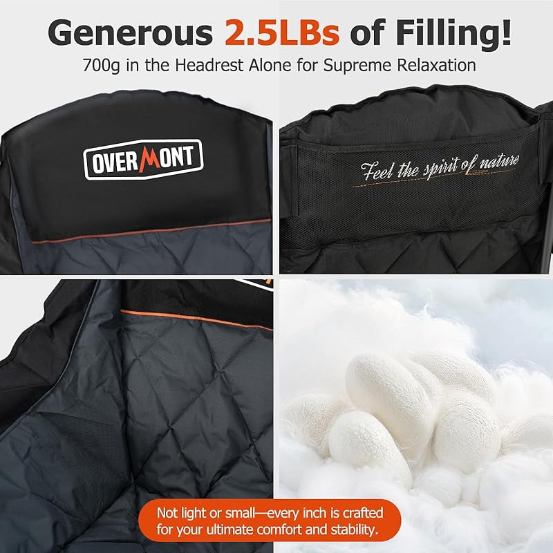 Oversized XL Camping Chair for Adults - 450lbs Support Heavy-Duty Padded Folding Chair with Side Pocket Cup Holder Cooling Bag