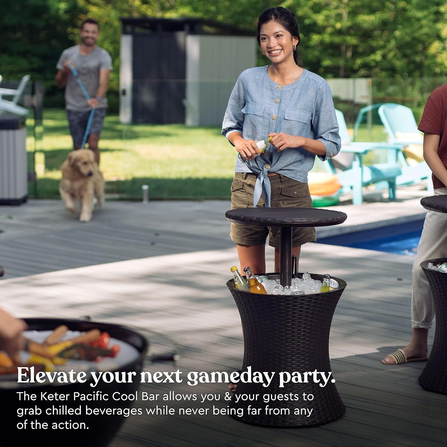 Pacific Cool Bar by Discover the freedom of easy entertaining.The Cool Bar is a cooler, cocktail table, and coffee table all in one; your ultimate 3-in-1 backyard, garden, and patio accessory. It's designed with an extendable tabletop, transforming from a contemporary coffee table into a sleek cocktail table – in one simple twist! For barbeques, deck parties or just lounging by the pool; enjoy a perfectly chilled drink right at your fingertips.
