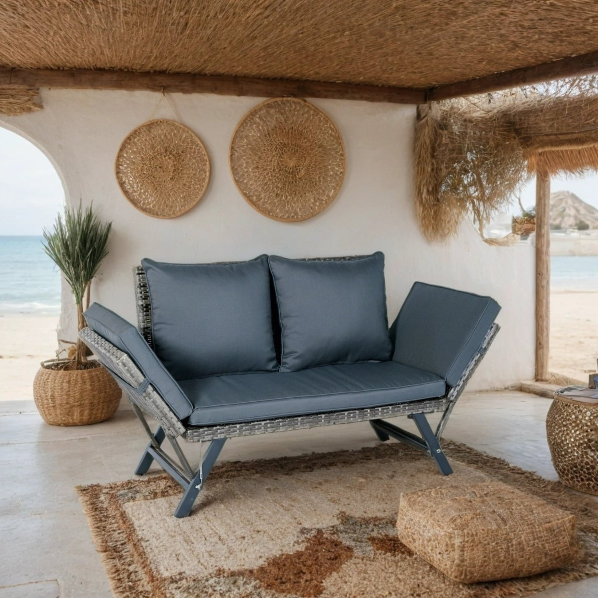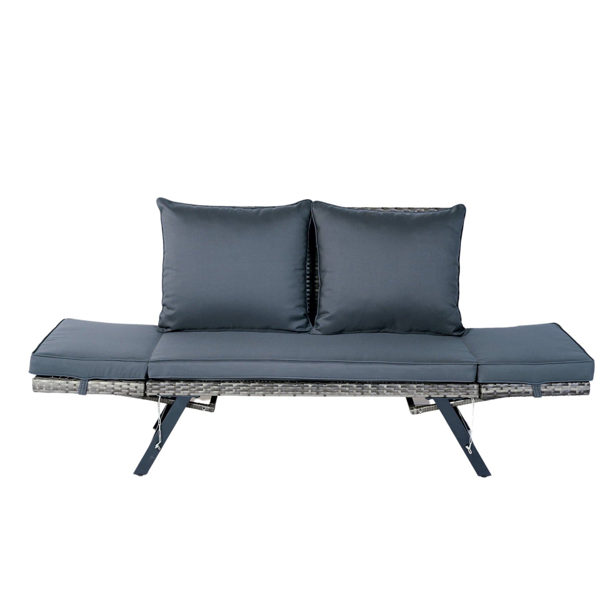 Garden & Outdoor, Outdoor & Patio Furniture, Patio Seating 1 PCS Patio Wicker Side Foldable Bench Patio Backyard Conversation Bench Grey Wicker + Dark Grey Cushion