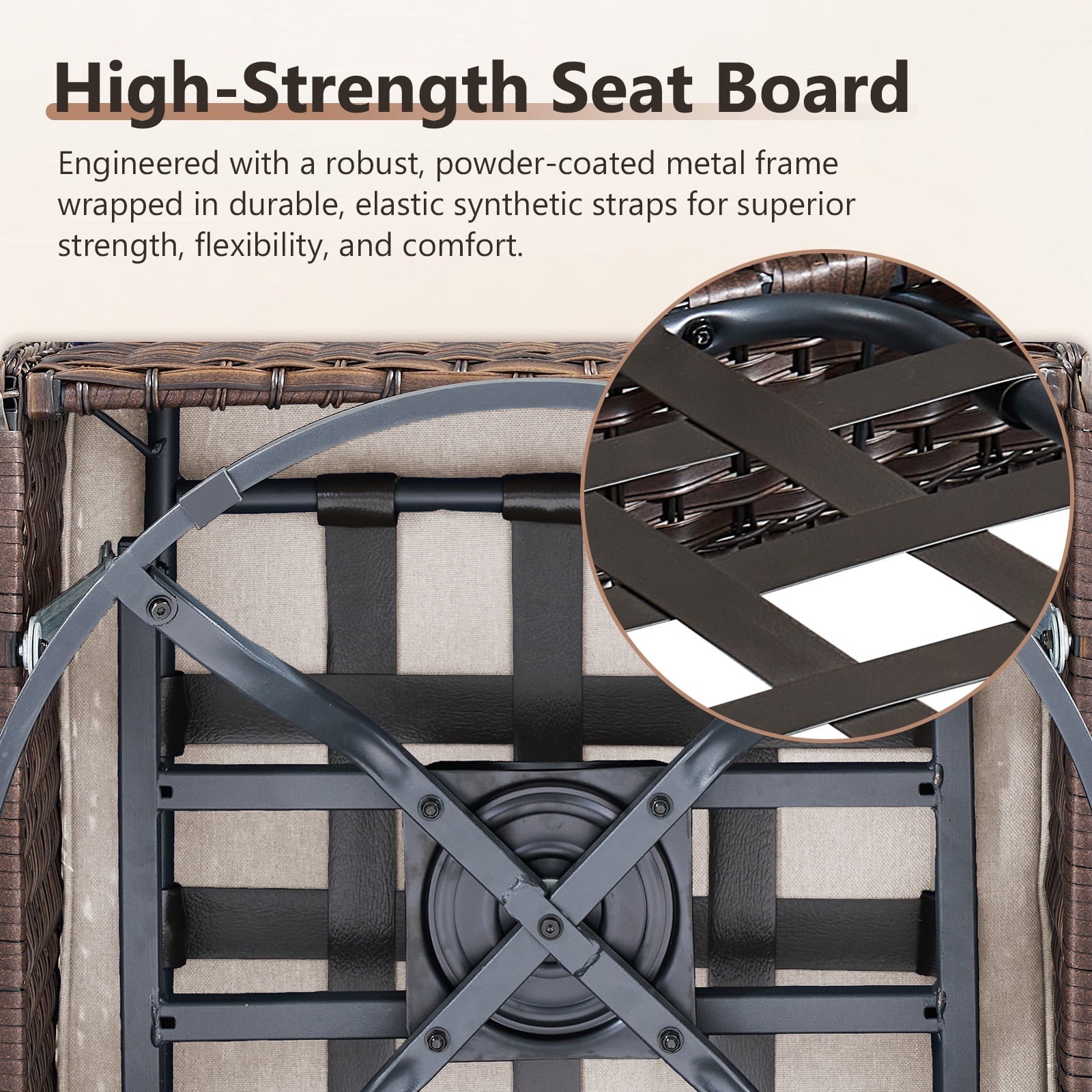Designed for both style and functionality, this 360-degree swivel patio chair combines a robust powder-coated steel base with premium PE wicker construction in a rich dark brown finish. The distinctive armrests feature a strategically placed hollow-cut center that serves dual purposes - creating convenient handholds for effortless chair movement while adding a modern design flourish. Deep-seated cushions with 4.53-inch high-resilience sponge cores and stain-resistant olefin fabric covers deliver superior comfort, making this swivel chair perfect for outdoor entertaining or relaxed lounging. The cohesive dark brown palette, from the textured wicker to the hand-finished woodgrain arms and sleek tapered legs, ensures a polished addition to any outdoor space.