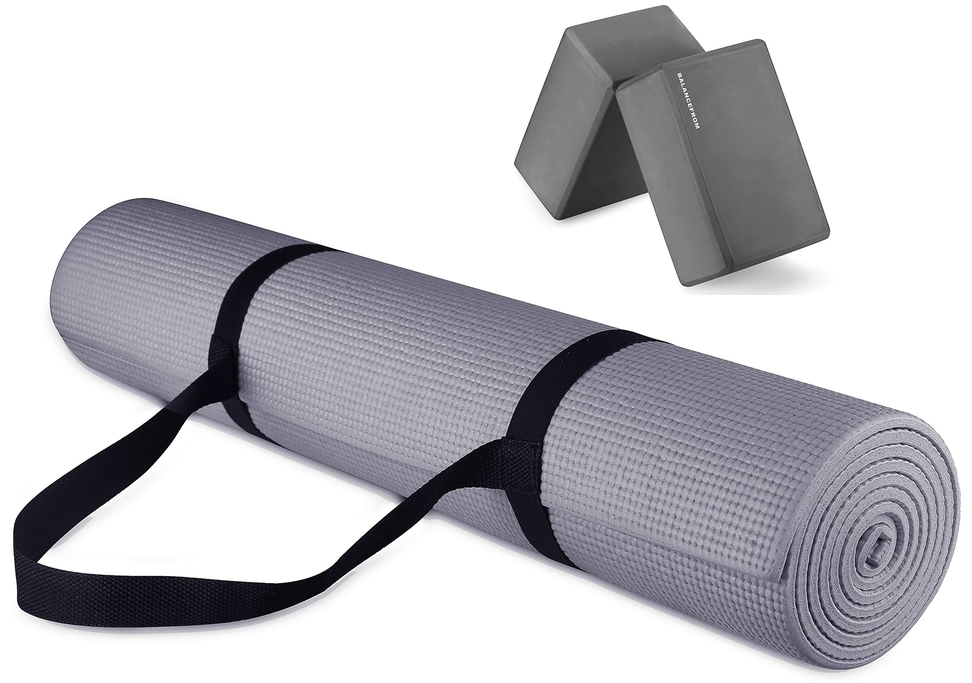 Details: BalanceFrom All Purpose 1/4-Inch High Density Anti-Tear Exercise Yoga Mat with Carrying Strap and Yoga Blocks