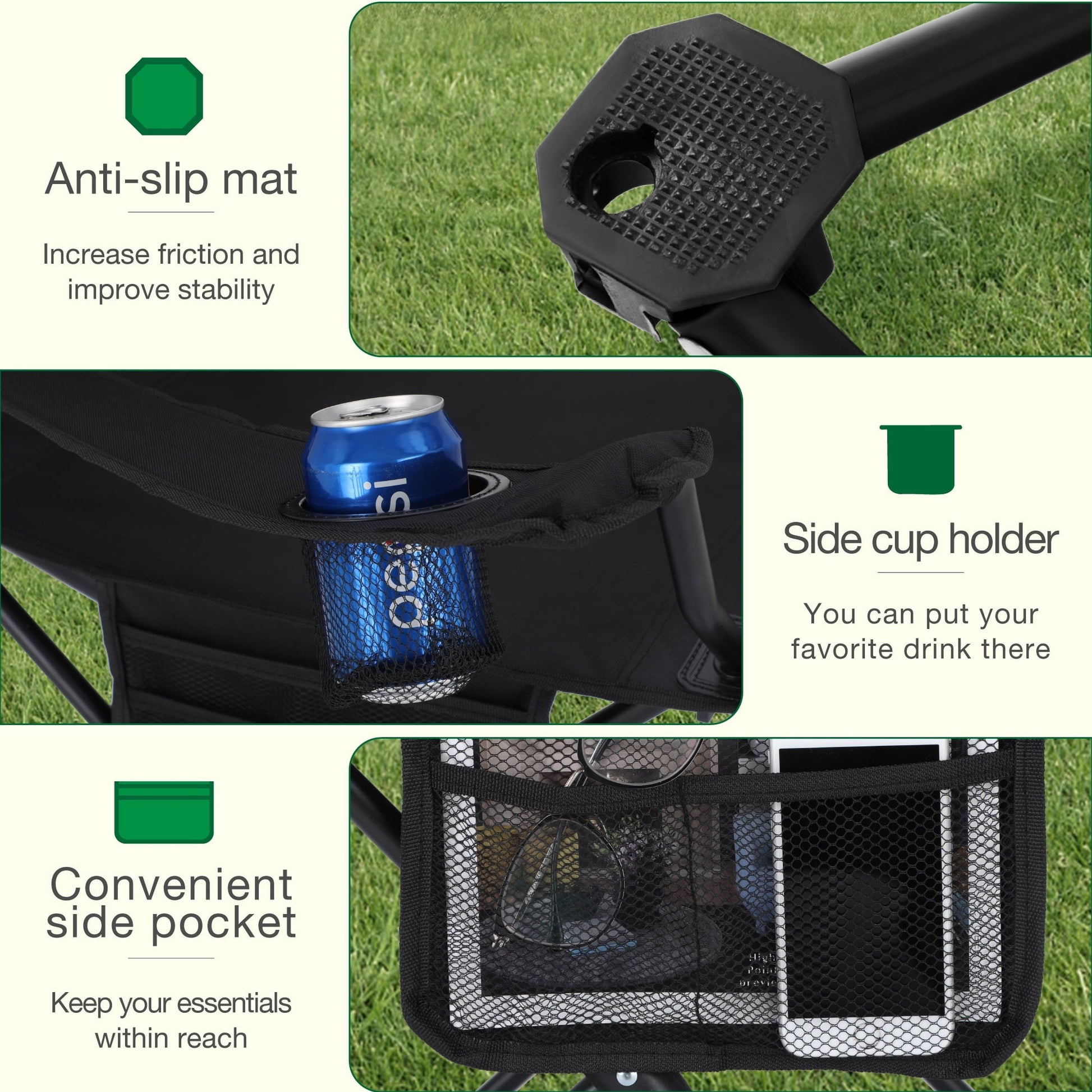 Sophia & William 2 Pack Camping Chairs Portable Outdoor Folding Chairs with Cooler Bag, Black