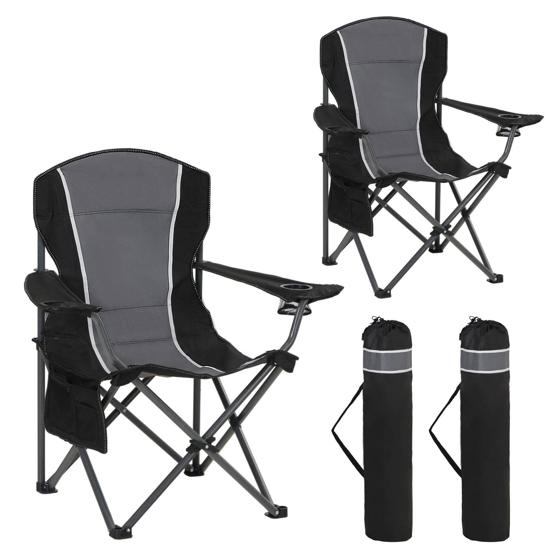 Sophia & William Oversized Camping Chair Outdoor Portable Folding Chair Heavy-Duty Steel Frame Support 350 lbs, 2 Pack, Gray