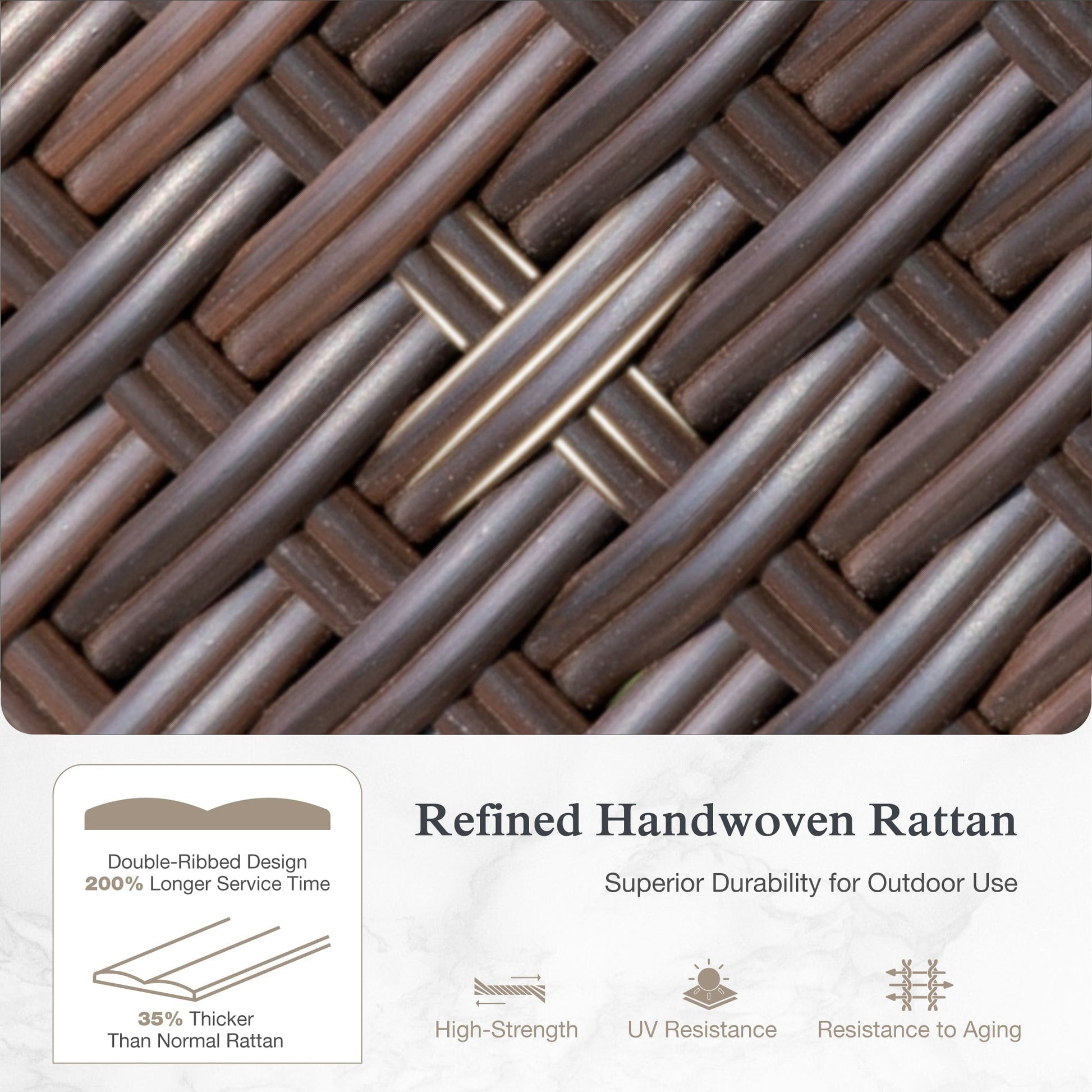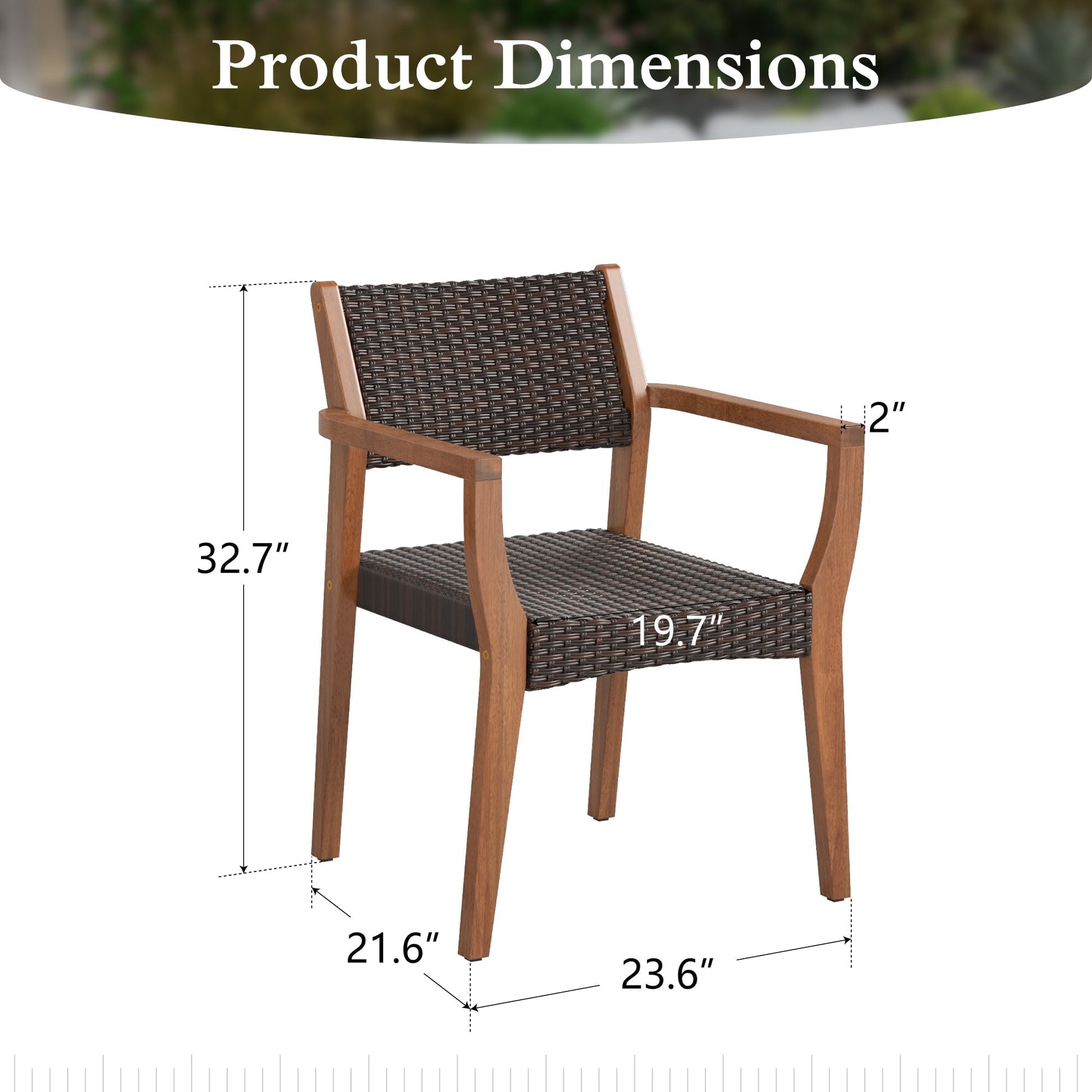 Alpha Joy Wicker Rattan Outdoor Patio Dining Chairs with Acacia Wood Structure - Set of 2, Dark Brown