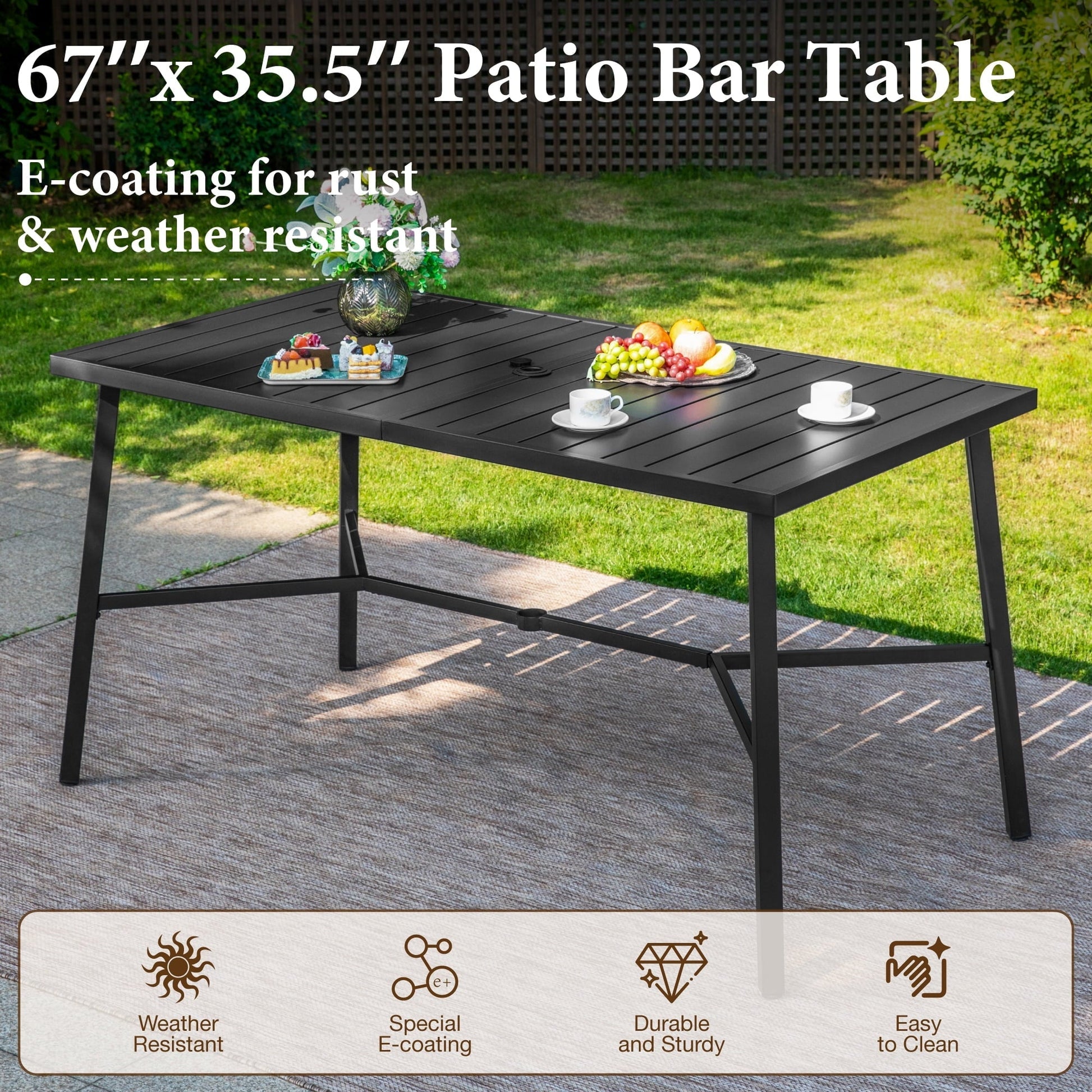 Elevate your outdoor gatherings with the Summit Living Outdoor Swivel Bar Stool Set of 7! This stylish set includes six comfortable patio bar stools that feature soft seat and back cushions for extra relaxation. Perfect for your patio, deck, or garden, the stools swivel for easy movement. The sleek metal steel bar table comes with an umbrella hole, allowing you to enjoy shade on sunny days. The classic black and beige color scheme beautifully complements any outdoor decor. Whether hosting a party or enjoying a quiet evening, this outdoor bar stool set is the perfect addition to your space!