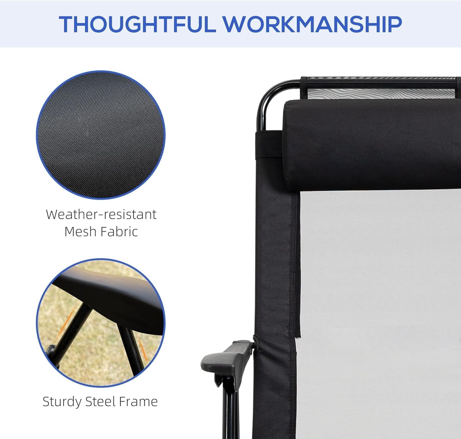 THTGCD Folding Patio Chairs Set of 2, Outdoor Deck Chair with Adjustable Sling Back, Camping Chair with Removable Headrest for Garden, Backyard, Lawn, Black