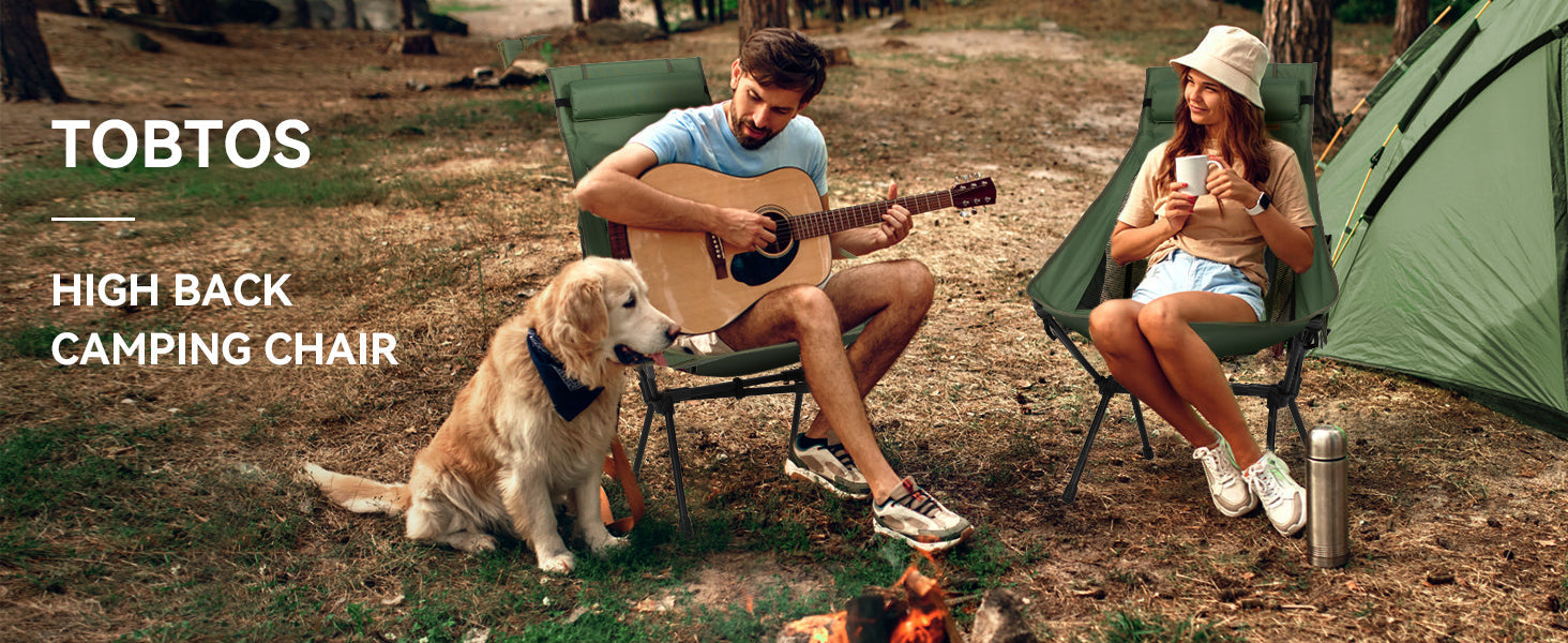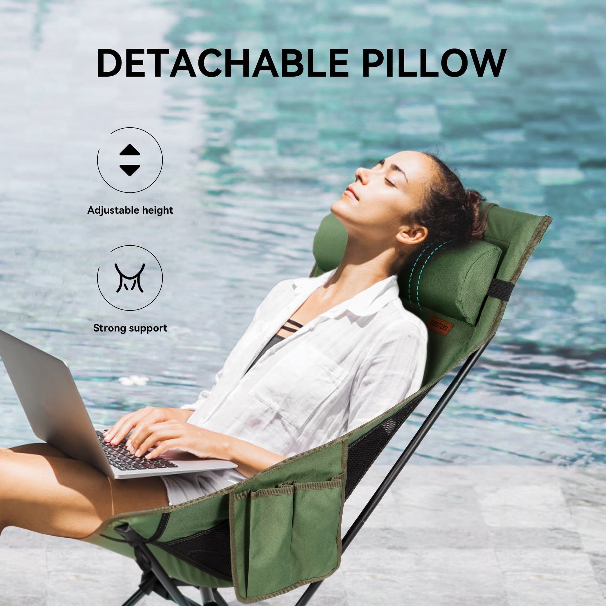 TOBTOS 440lbs High Back Camping Chair with Pillow, Compact Foldable for Camping, Hiking, Backpacking (Green)