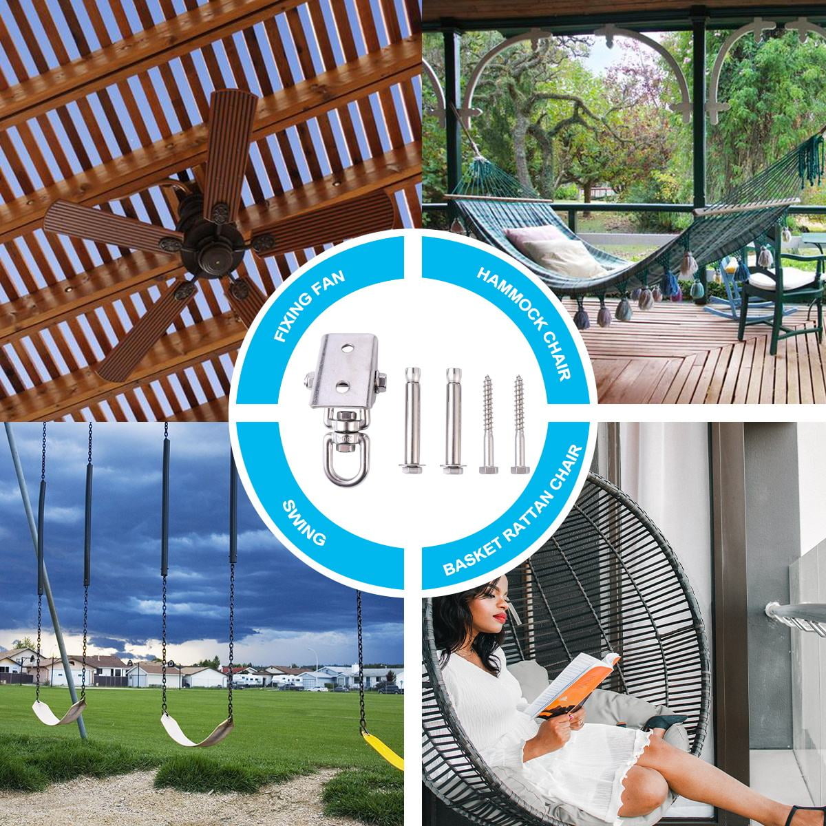 - Specially designed to prevent metal friction from producing quiet, smooth and special swing -rotatable hammock swing hanger hook