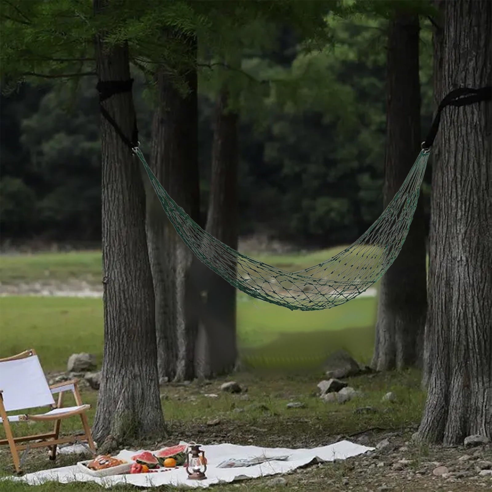 Discover the ultimate relaxation solution with our stylish and durable outdoor hammock! This 240x100cm/94.49x39.37in mesh nylon sleeping bed is perfect for beach, camping, hunting, hiking, or just relaxing in your backyard. Available in three vibrant colors to match your style and surroundings, this hammock adds a pop of color to your relaxation. Made with high-strength nylon and breathable mesh, it's built to last and withstand daily use while providing maximum comfort. Lightweight and portable, it's easy to fold and carry, making it ideal for outdoor adventures, travel, or simply lounging at home. No tools required for setup, and simple to install in your home, balcony, yard, or even outdoors in the wilds for a hassle-free experience. Ideal for indoor and outdoor use, whether you're lounging at home, enjoying the fresh air from your balcony, or camping under the stars. Perfect for any relaxing occasion. Package Content: 1 x Hammocks.