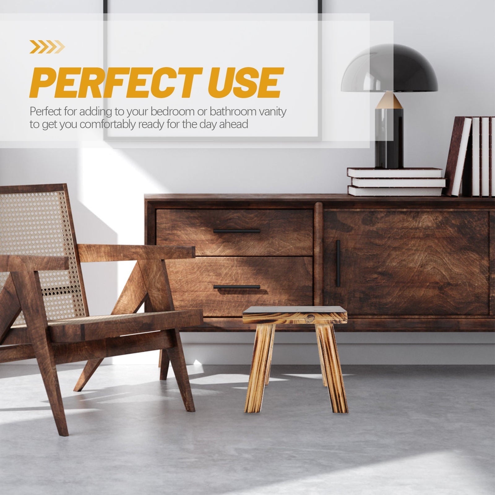 UPOUART Stools Light Brown Wooden 1Pcs 9.4X9.1X7.9In