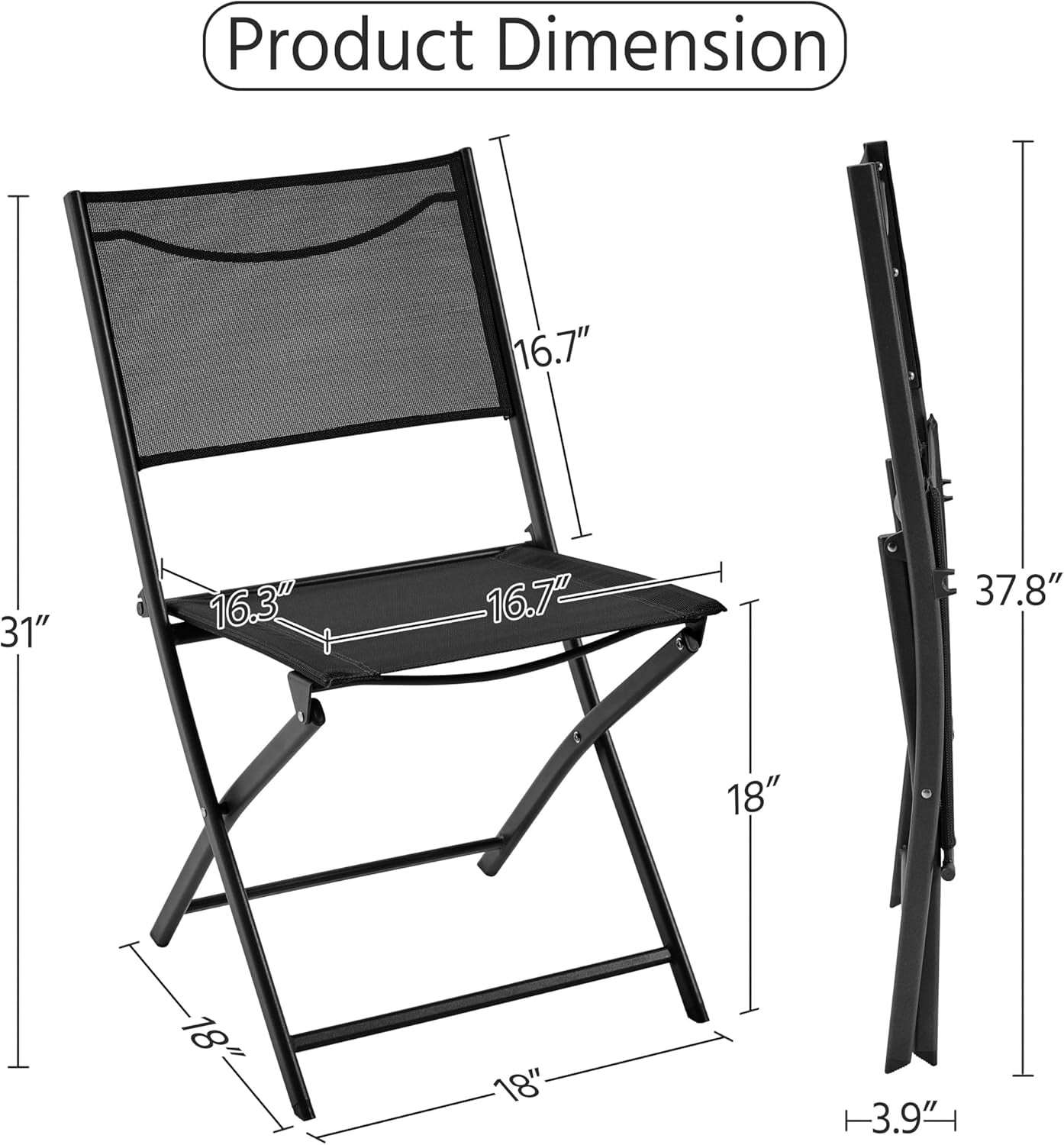VibrantEcho Patio Portable Dining Chairs Set of 4 with Metal Frame, Outdoor Metal Folding Chairs with Backrests for Camping, Lawn, Yard, Beach, Black