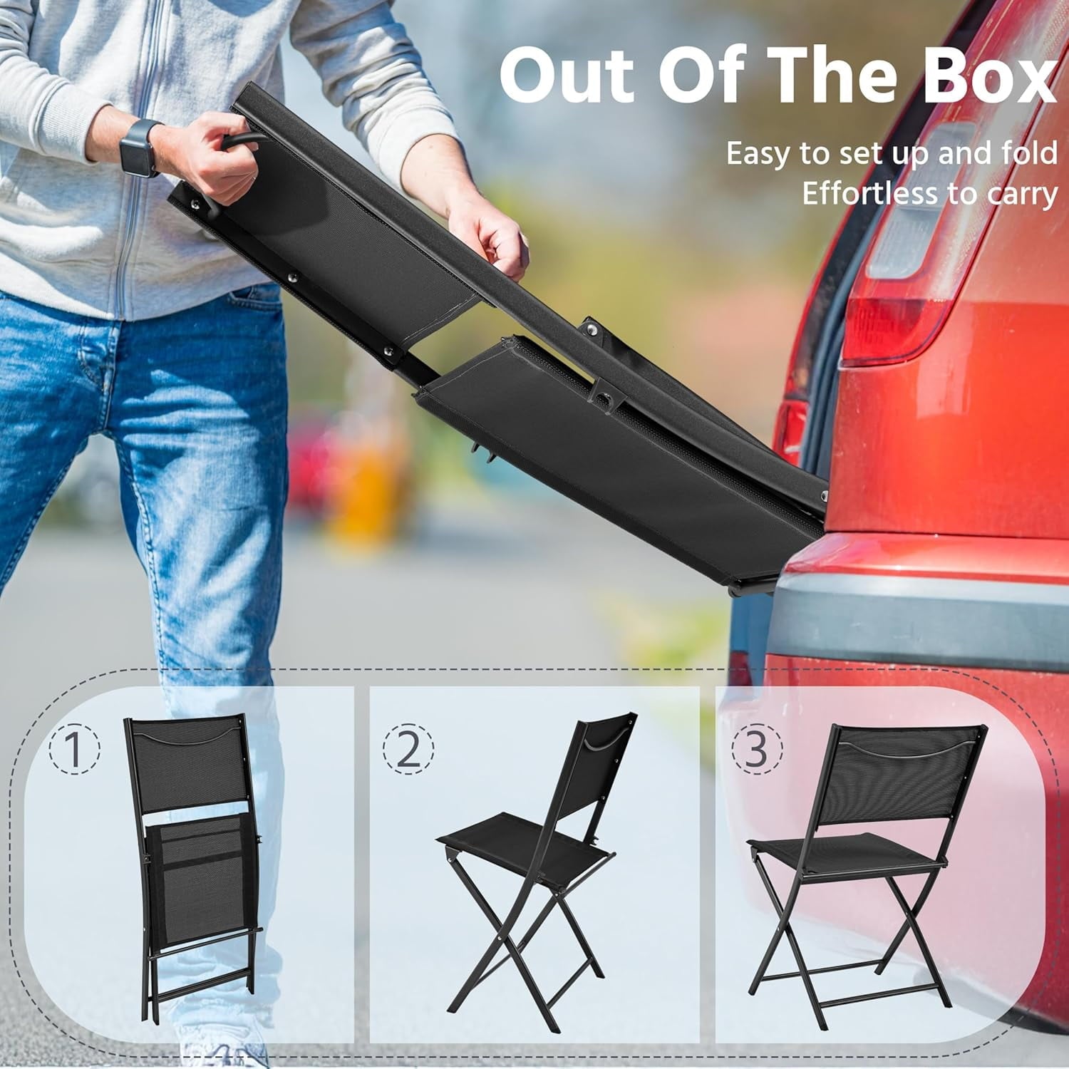 Out of the Box: This Texteline garden dining chair set comes fully assembled, sparing you the hassle of installation. Simply open the box, unfold the chair, and you're ready to enjoy a relaxing summer night garden dinner