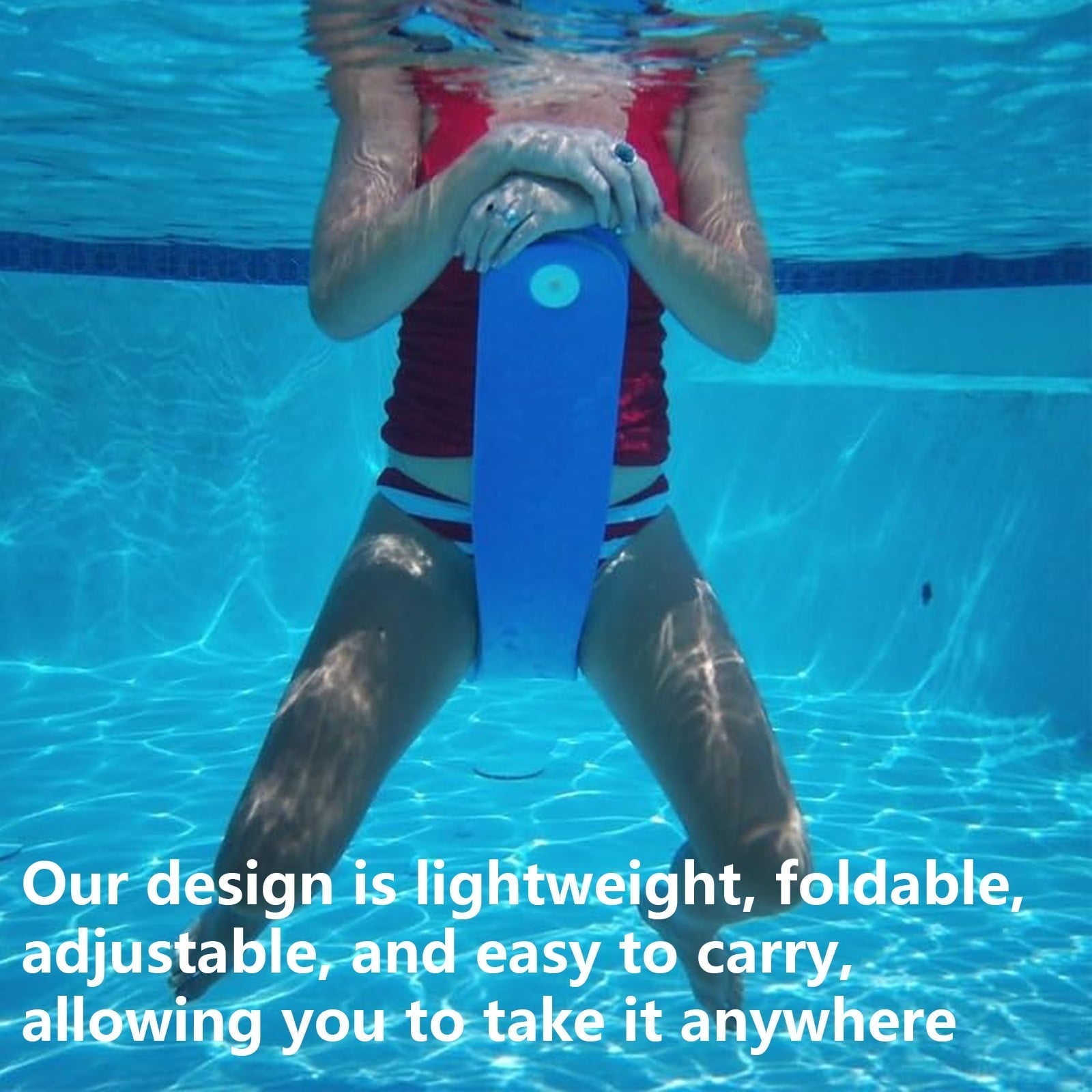 Water Chair - Floating Chair on Water Product information: Our new and improved Float-N-Fold Water Chair is the perfect combination of our Seat and Lounger. Sit in the water using one side of the float as a back rest or arm rest. Adjust the float to back and relax. We've also narrowed out the middle of the float for people who like to use the float as a saddle. This patent-pending design is lightweight and adjustable to fit different body types and situations! The solid floats are ONE solid color with black hinges. We cannot put an exact weight limit on the floats due to the fact that every body style has different buoyancy. Keep in mind, our floats are designed to float you shoulder deep in water.