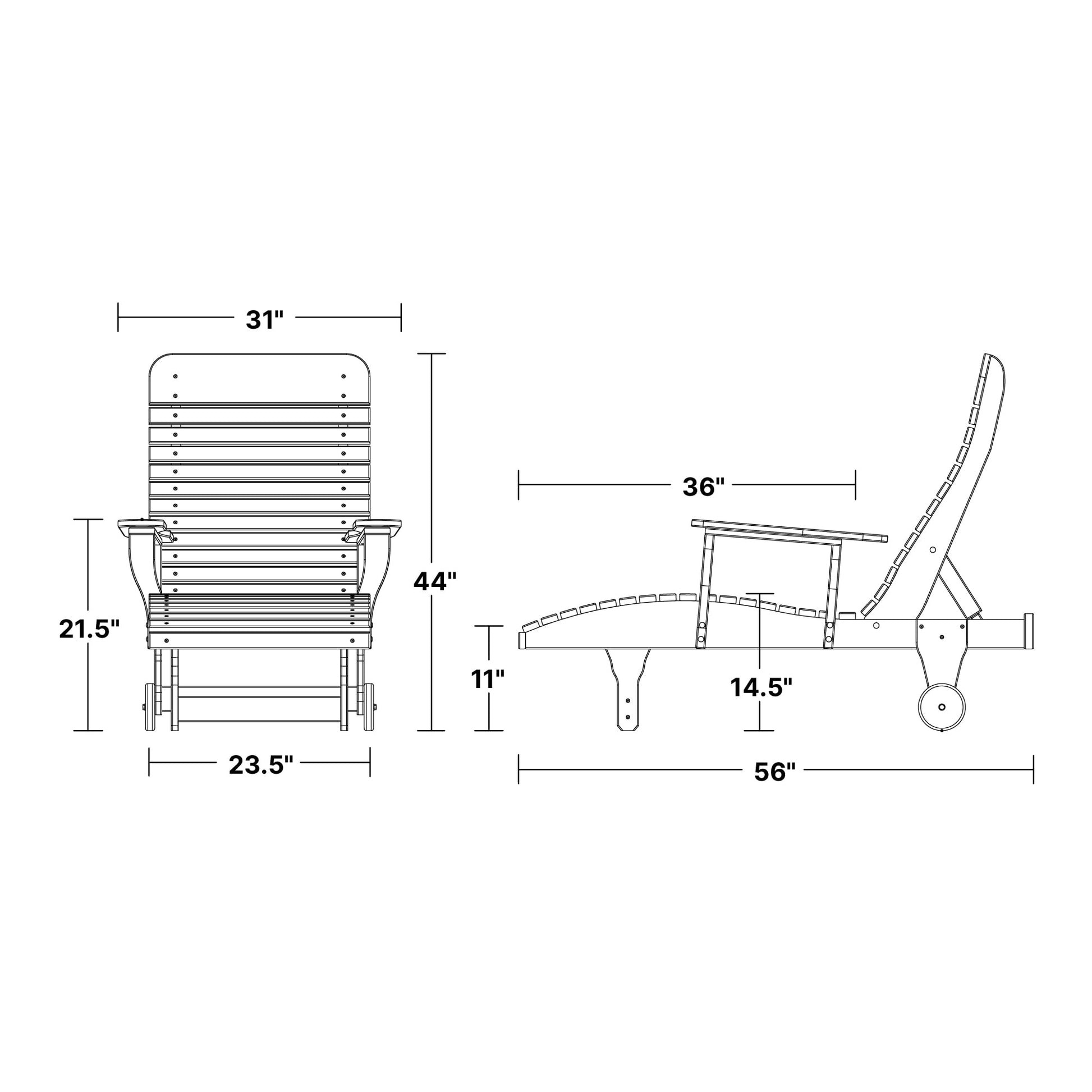 Lounge poolside and soak up the warm sunshine in our Signature Chaise Lounge. This adjustable chaise lounge features durable wheels that allow you to find your perfect spot by the pool or on the patio with ease. It offers multiple reclining positions with comfortable contours so you can unwind under the blue skies. Constructed from high-density polyethylene (HDPE), it’s built to withstand harsh weather conditions and requires minimal maintenance. Choose from a variety of vibrant, fade-resistant colors and enjoy a 20-year warranty for lasting peace of mind.