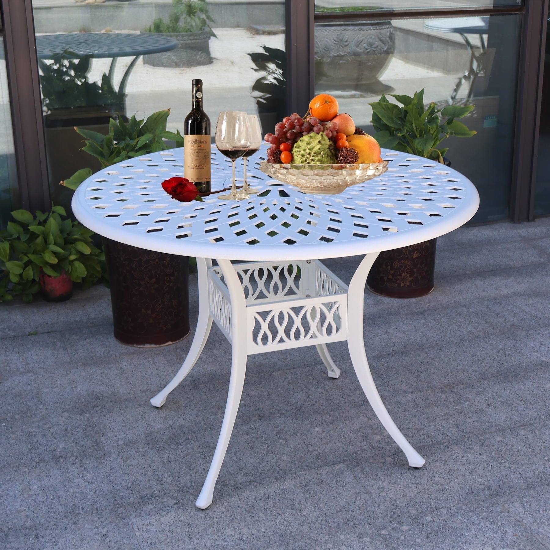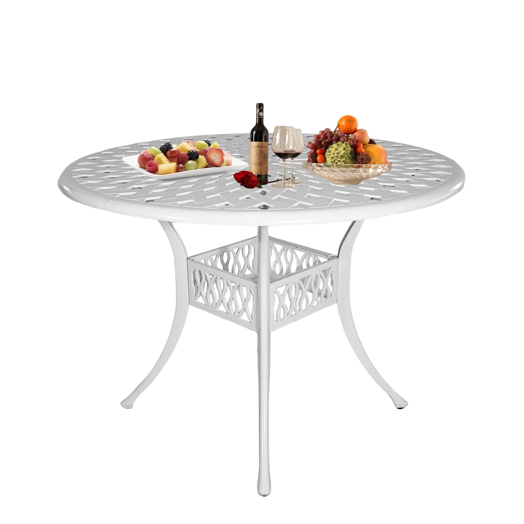 Withniture 42 INCH Patio Table with Umbrella Hole, Outdoor Round Cast Aluminum Bistro Table White