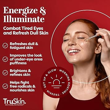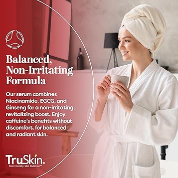 - LIGHTWEIGHT & FAST ABSORBING: TruSkin’s Caffeine face and eye serum for dark circles and puffiness quickly absorbs without leaving a greasy residue in a clear, ultralight formula, delivering its powerful blend for an immediate energizing and revitalizing effect. Directions: After cleansing and toning skin, apply 3-5 drops to face and eye area once daily, avoiding direct contact with eyes. Follow with eye cream and moisturizer.