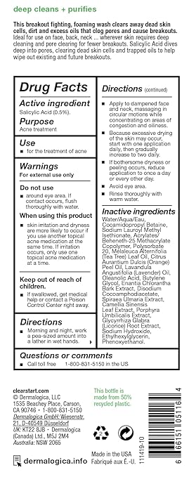 Dermalogica Clear Start Breakout Clearing Foaming Wash - Acne Face with Salicylic Acid & Tea Tree Oil Dive Into Pores to Clear, Soothe, Energize
