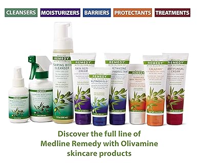 Remedy Unscented Olivamine Skin Repair Cream helps protect and relieve damage related to frequent hand washing such as dryness, cracked, inflamed, reddened and itchy skin. Blend of nutrients targeted for skin cells, as well as Dimethicone to help prevent e-TEWL. Tested to be non-sensitizing, non-allergenic. CHG and latex friendly. 32 ounce bottle. Body lotion for women or men can be used on hands and over the entire body. Medline offers a complete line of skin care products and lotions.