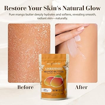- PREMIUM RAW MANGO BODY BUTTER: Crafted from pure, unrefined mango seeds, this organic unrefined mango butter retains its thick, creamy texture. Unlike melted alternatives, our raw butter is sliced to preserve nutrients—perfect for your body butter making kit or lotion bar creations.