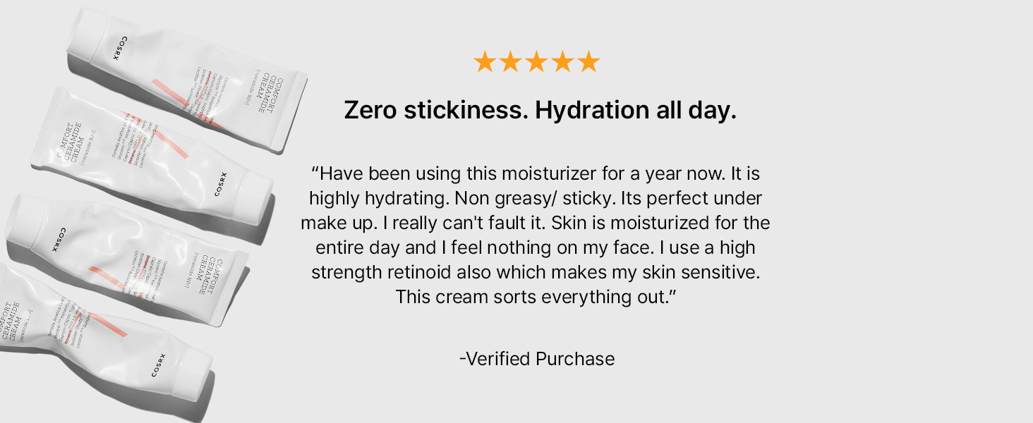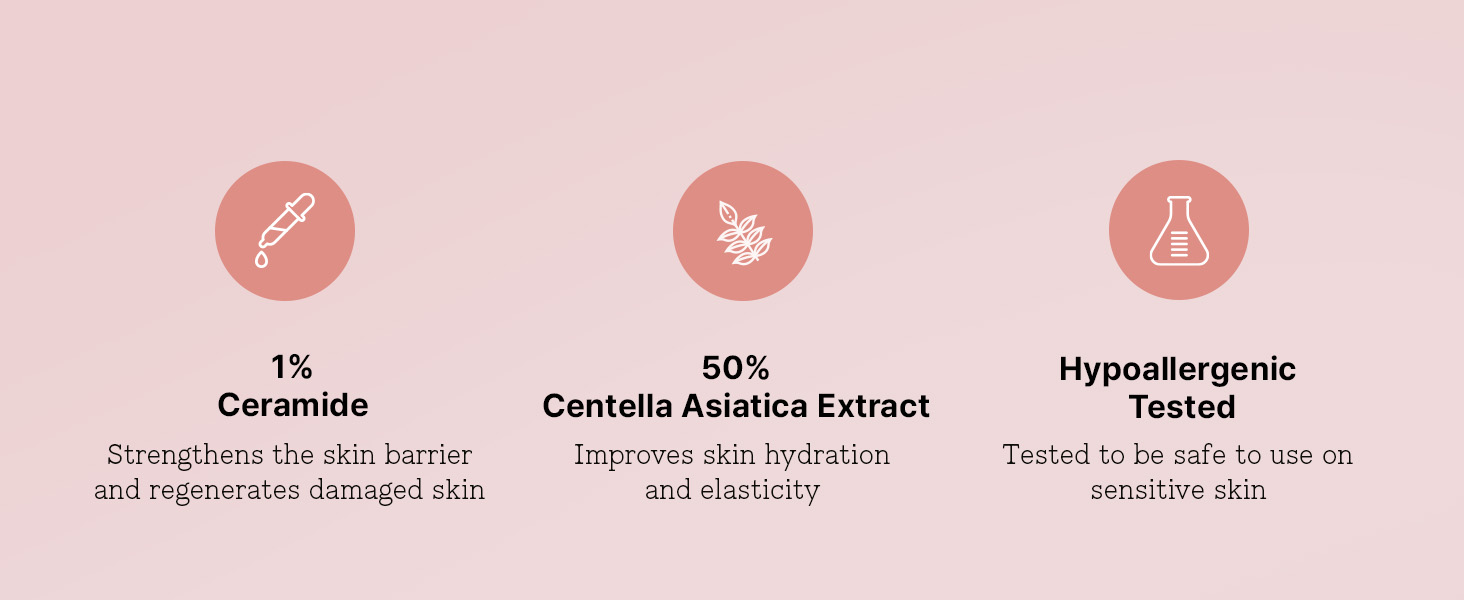 - Key Ingredient: Skin friendly and effective Ceramide 3 to lock in moisture with 50% Centella Asiatica Leaf Water to Soothe.