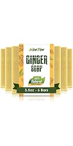 - 【100% NATURAL INGREDIENTS】 Made from natural extracts such as ginger, turmeric, olive, coconut, sunflower, and sesame,…Ginger soap nourishes and enhances the skin texture, rejuvenates, gently removes dead skin forming soft, perfect skin.