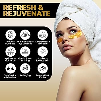 Indulge in the ultimate luxury with Klainja's Luxury Golden Eye Masks. These eye masks are designed to pamper and rejuvenate your delicate eye area, leaving you feeling refreshed and revitalized. Infused with precious golden particles, hyaluronic acid, vitamin c, and rose essence, these masks harness the power of nature to nourish and hydrate your skin. Experience a moment of pure indulgence as you treat yourself to a spa-like experience in the comfort of your own home. Klainja's Luxury Golden Eye Masks are a must-have for those seeking the finest in self-care and beauty rituals.
