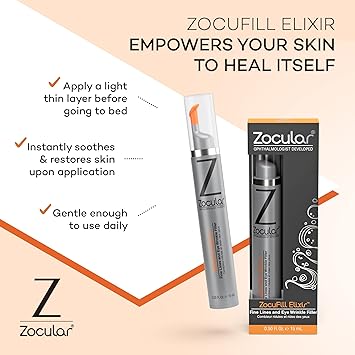 - Developed by professionals, ZocuFill Elixir is crafted with a patented botanical system to optimize your skin complexion. This effective formula is favored by eye care professionals for its soothing properties. It is designed to help fortify your skin's natural defenses against daily environmental stressors