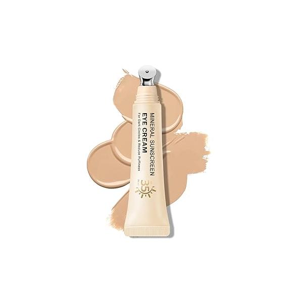 Mineral Sunscreen Eye Cream for Dark Circles,3-in-1 Under Anti Aging Puffiness and Bags Eyes,Under Corrector SPF 35(Medium)