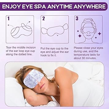 - 【Enjoy anytime, anywhere】The Disposable Self Heating Moist Heat Eye Masks adopts a disposable design and independent packaging, making it clean and convenient to use. Suitable for office workers, students, businessmen, etc. You can take eye spas at any time: sleep time, leisure time, lunch break time, flight or train travel time, office rest time