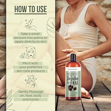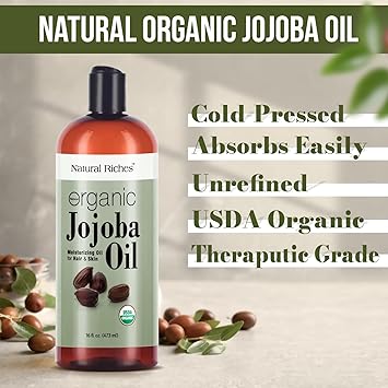 Natural Riches Organic Jojoba Oil, Pure (16 oz) | Moisturizing Oil for Face, Hair, Skin & Nails Cold Pressed Hexane Free Base Carrier oil.