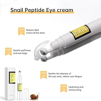 - ADVANCED SNAIL PEPTIDE EYE CREAM: Snail peptide eye cream can effectively reduce fine lines and dark circles at the corners of the eyes, soothe puffiness and eye bags. Soothe dryness and moisturizing. Make the circles smoother and more hydrated