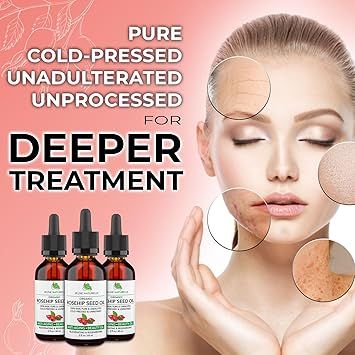 - ORGANIC ROSEHIP OIL FOR SKIN: Rosehip oil for face and skin care is known for its beneficial effects. Our rosehip oil organic product is a facial moisturizer that adds a healthy glow, making it a staple in women's skincare.