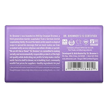 Dr. Bronner's - Pure-Castile Bar Soap (Lavender, 5 Ounce, 12-Pack) Made with Organic Oils, For Face, Body & Hair, Gentle Moisturizing, Biodegradable, Vegan, Cruelty-free, Non-GMO