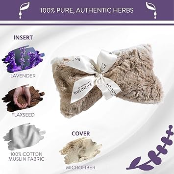 Sonoma Lavender Spa Mask, Heatable/Chillable Aromatherapy Eye Pillow with Infused Flaxseed Insert, Compress for Stress Relief Removable and Washable Cover (Platinum Angora)