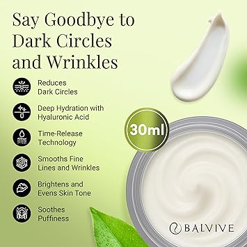 - TARGETS DARK CIRCLES & PUFFINESS - BALVIVE Eye Cream is designed to lessen the appearance of dark circles and puffiness around the eyes. Infused with caffeine eye serum and multi-peptides, it works to visibly lighten and refresh tired, swollen eyes, making it an effective eyebag remover.